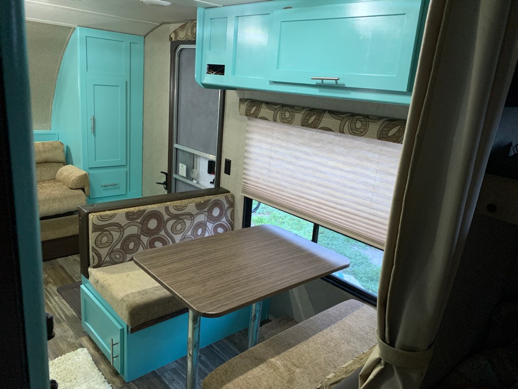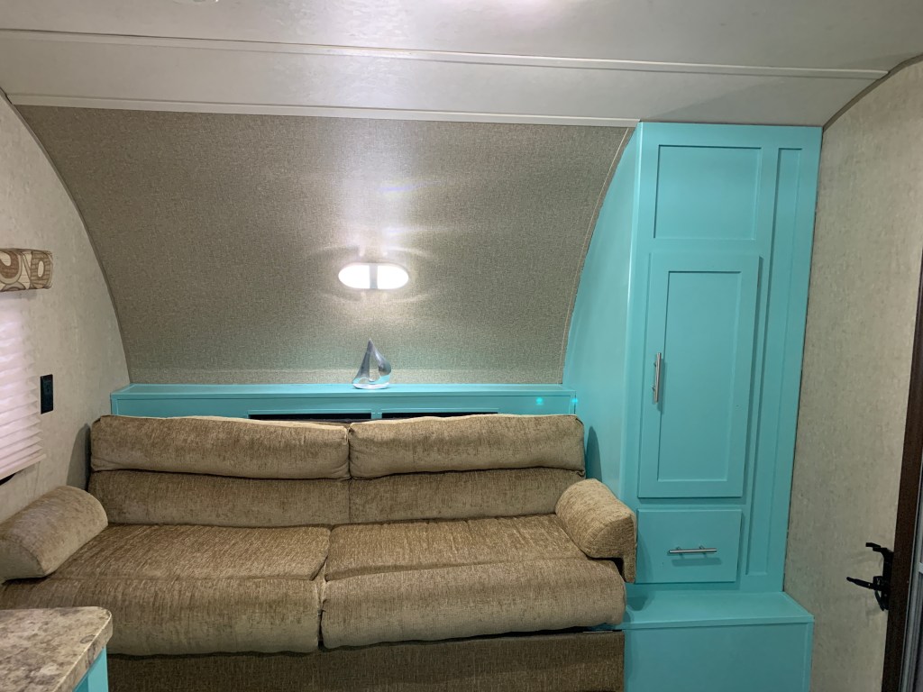Phase 1 of the RV Facelift is complete. Video is coming soon. The cabinets are 80% finished (there is still the one in the bedroom and that involves us taking out the bed and everything) and the backsplash in the kitchen is complete. What a pain but so worth it!