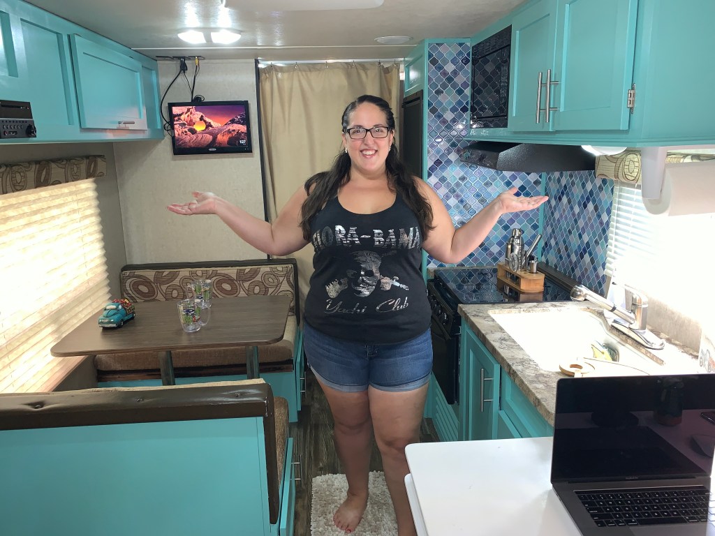 Phase one of this remodel consisted of painting the cabinets, adding a backsplash to the kitchen and a few little details here and there to give us just a little bit of comfort while traveling.
